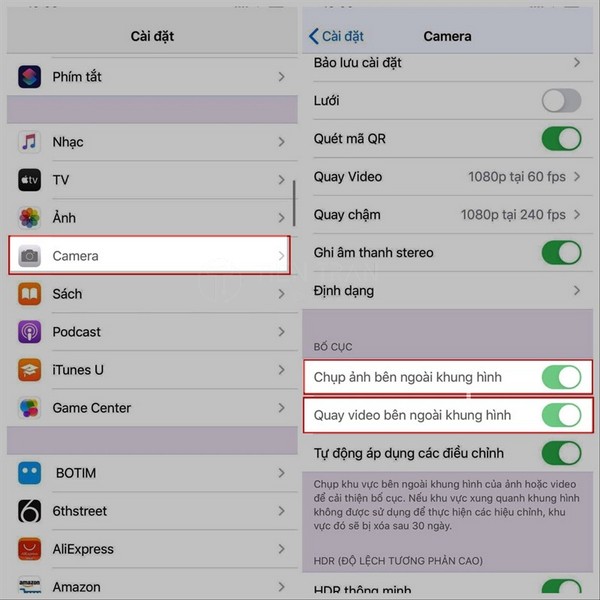 - Cách bật: Vào Cài đặt > Camera → gạt bật Smart HDR.