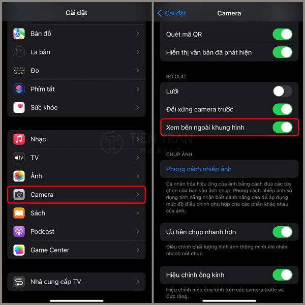 - Cách bật: Vào Cài đặt > Camera > Lưới.