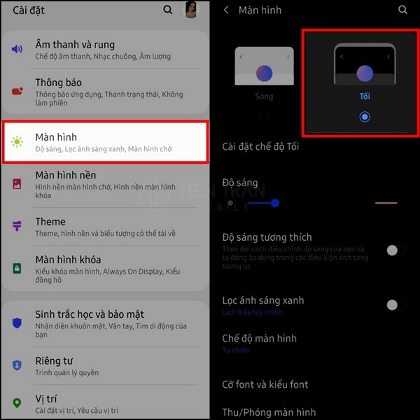 - Bước 3: Chọn Chế độ tối (Dark Mode).