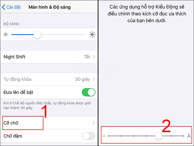 Cài đặt cỡ chữ iPhone qua phần Màn hình & Độ sáng
