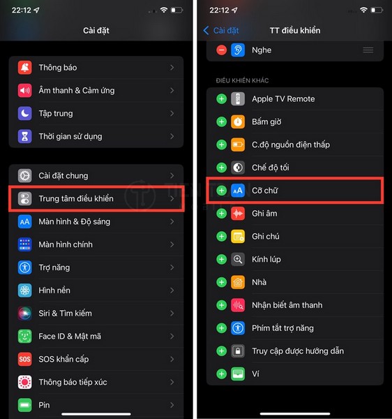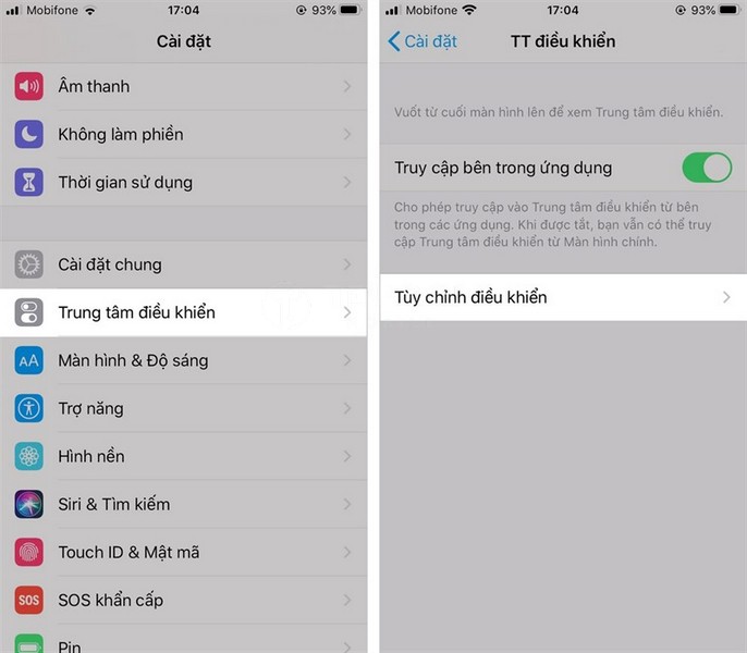 - Vào Cài đặt > Trung tâm điều khiển (Control Center).