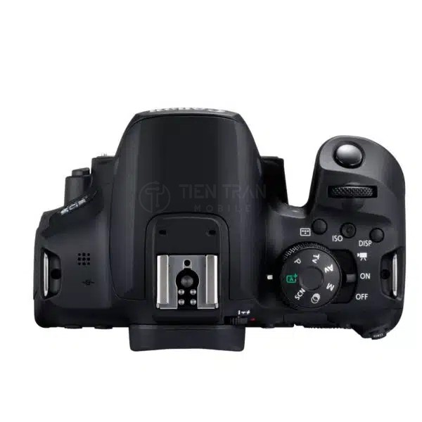 Về tổng thể, Canon 850D vẫn giữ ngôn ngữ thiết kế đặc trưng của dòng DSLR ba số: nhỏ gọn, bo tròn các cạnh và dễ thao tác. Khung máy được làm từ hợp kim nhôm và nhựa polycarbonate với sợi thủy tinh dẫn điện. Điều này giúp trọng lượng máy rất nhẹ, chỉ khoảng 515g (bao gồm cả pin và thẻ nhớ). Tại Tiến Trần Mobile, khách hàng thường rất bất ngờ khi cầm máy lên vì nó nhẹ hơn nhiều so với vẻ ngoài hầm hố. Tuy nhiên, lớp vỏ sần bên ngoài vẫn mang lại cảm giác chắc chắn, cao cấp chứ không hề “rẻ tiền”.
