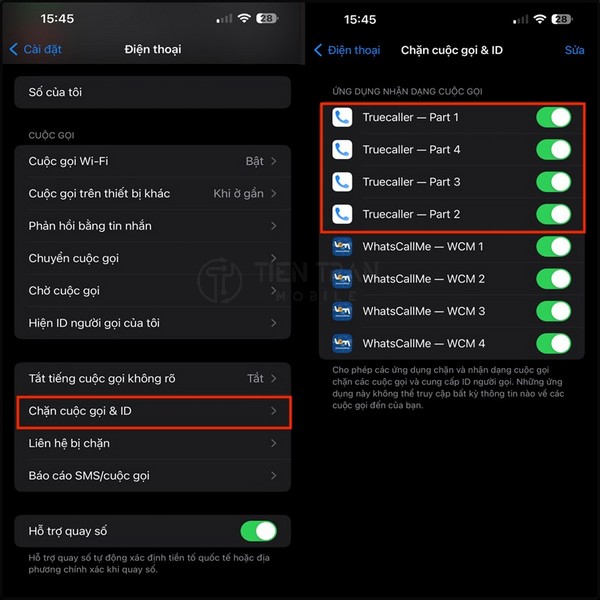 - Cài đặt > Điện thoại > Chặn & ID cuộc gọi > Cho phép ứng dụng lọc cuộc gọi.