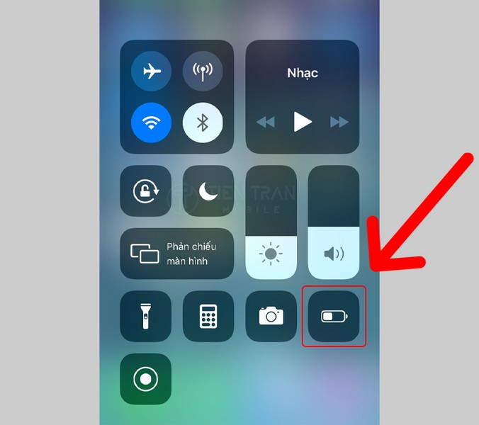 Đây là cách nhanh nhất. Bạn chỉ cần vuốt mở Trung tâm điều khiển và nhấn vào biểu tượng hình cục pin.