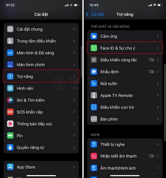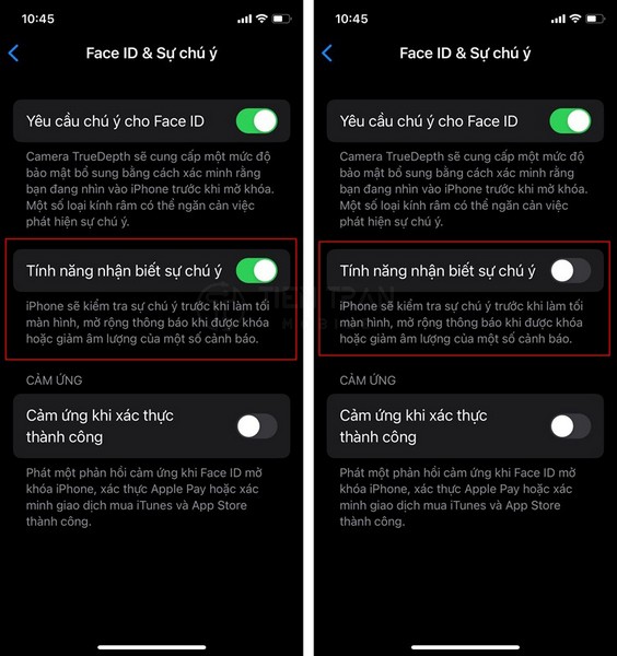 - (Cách khác: Bạn cũng có thể vào Cài đặt → Trợ năng → Face ID & Sự chú ý → Tắt Tính năng nhận biết sự chú ý).