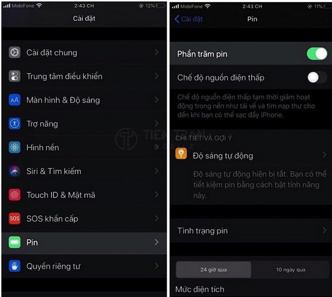 Hướng dẫn hiển thị phần trăm pin trên iPhone