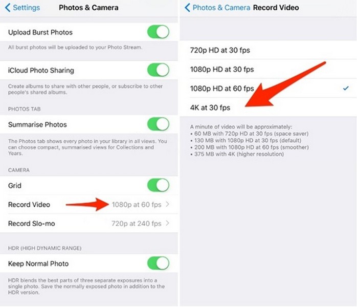 Quay video 4K trên iPhone mang lại độ phân giải 3840×2160 pixels, cho độ chi tiết gấp 4 lần so với chuẩn Full HD (1080p).