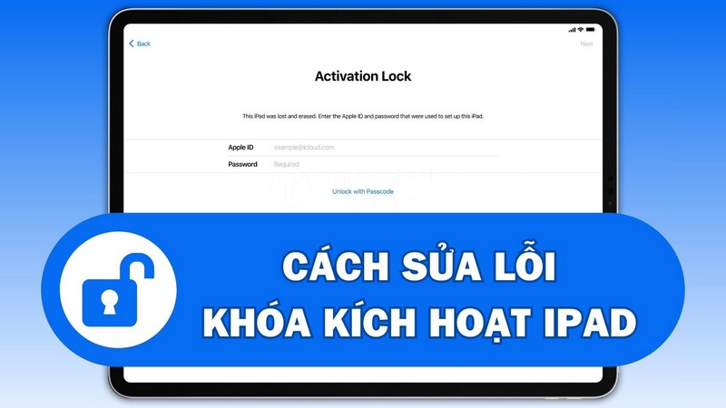 - Màn hình hiển thị “Activation Lock” hoặc “iPad bị khóa kích hoạt”, yêu cầu Apple ID.