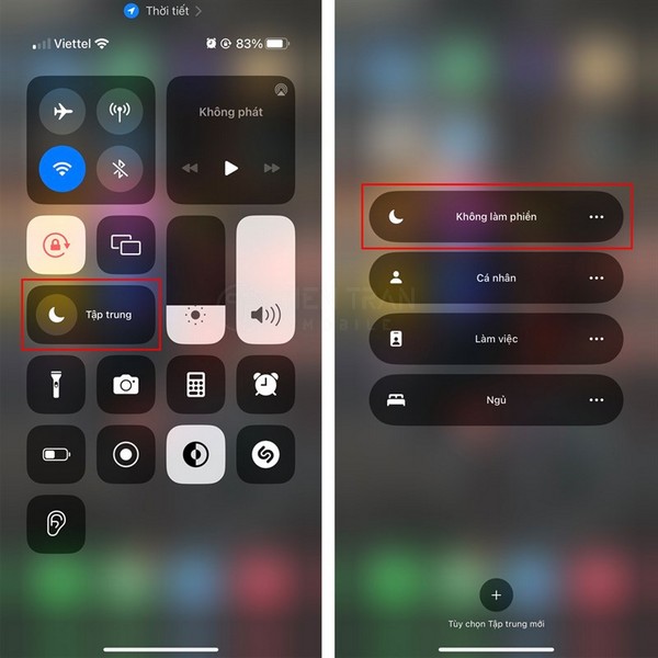 - Kiểm tra mục Tập trung. Nếu thấy đang bật (Không làm phiền, Cá nhân, Ngủ…), hãy chạm vào để tắt ngay.