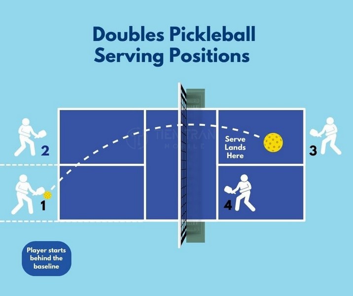 | Vị trí giao | Điểm chẵn: bên phải; Điểm lẻ: bên trái | Người đứng bên phải luôn giao bóng đầu tiên của lượt |