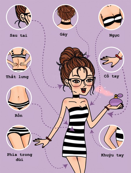 - Vùng rốn: Một mẹo nhỏ ít người biết. Rốn tỏa nhiệt rất tốt, giúp định hình mùi hương cơ bản cho cơ thể.