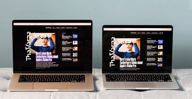 Không gian hiển thị của bản 15 inch lớn hơn khoảng 26,6%. Điều này tạo ra sự khác biệt rõ rệt khi bạn làm việc đa nhiệm với hai cửa sổ song song, đọc tài liệu dài, hay chỉnh sửa video. Cả hai đều là màn hình Liquid Retina với độ sáng 500 nits, dải màu rộng P3 và công nghệ True Tone, cho chất lượng hiển thị sắc nét và màu sắc trung thực như nhau.
