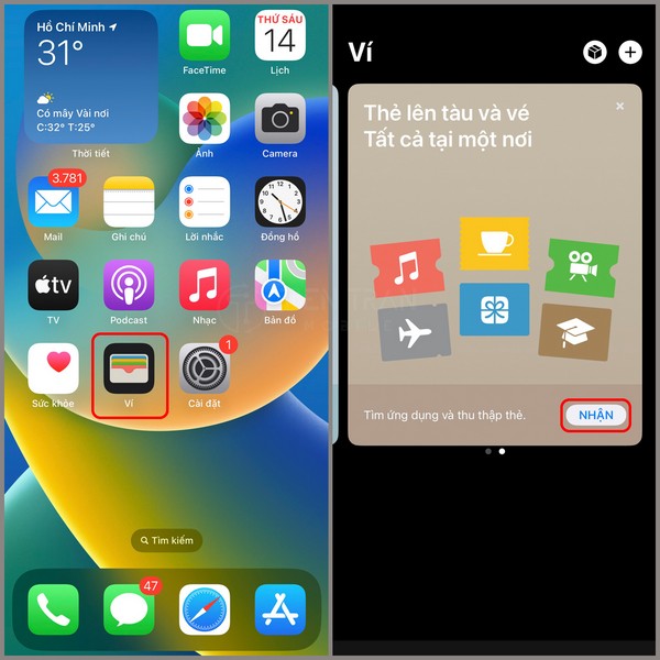 - Apple Wallet (Ví): Là ứng dụng lưu trữ và quản lý. Đây là nơi bạn cất thẻ tín dụng, thẻ thành viên, vé, chìa khóa…